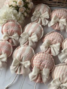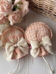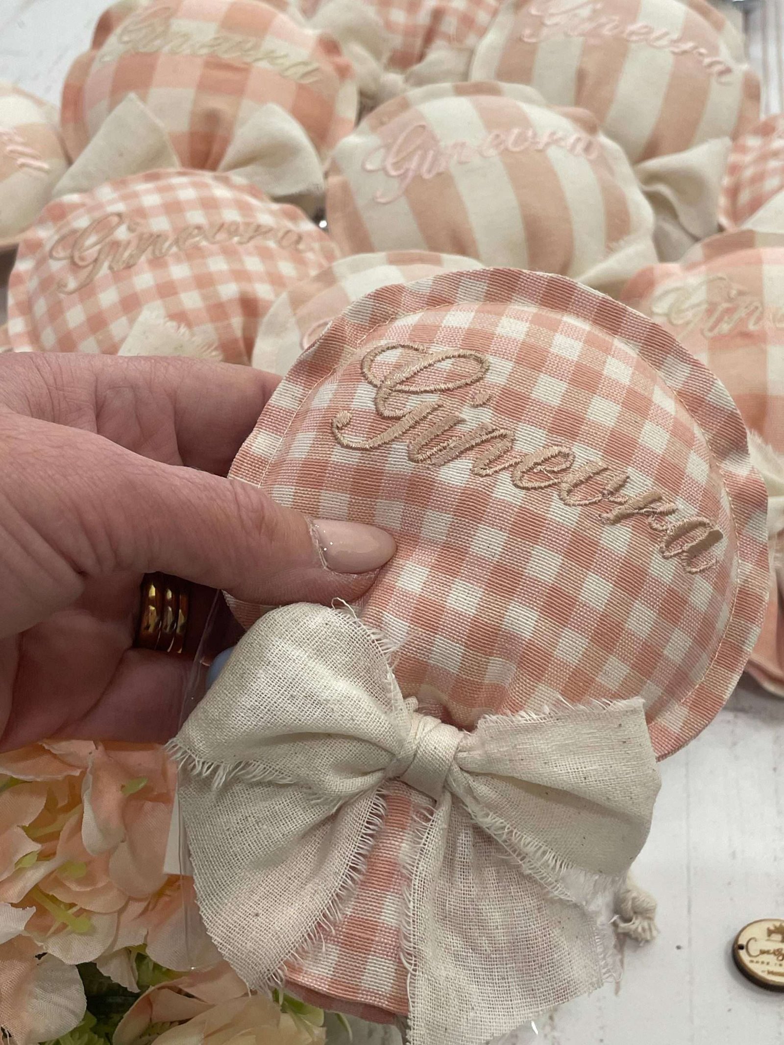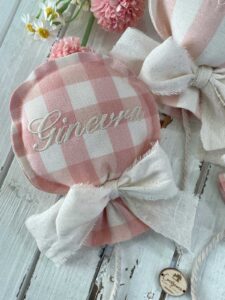Un’elegante bomboniera, realizzata interamente a mano dalla nostra sartoria con passione e cura per i dettagli.