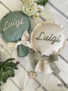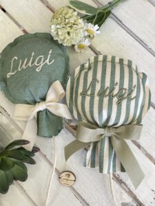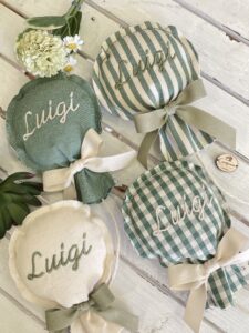 Un’originale bomboniera artigianale, realizzata a mano dalla nostra sartoria con passione e cura per i dettagli.