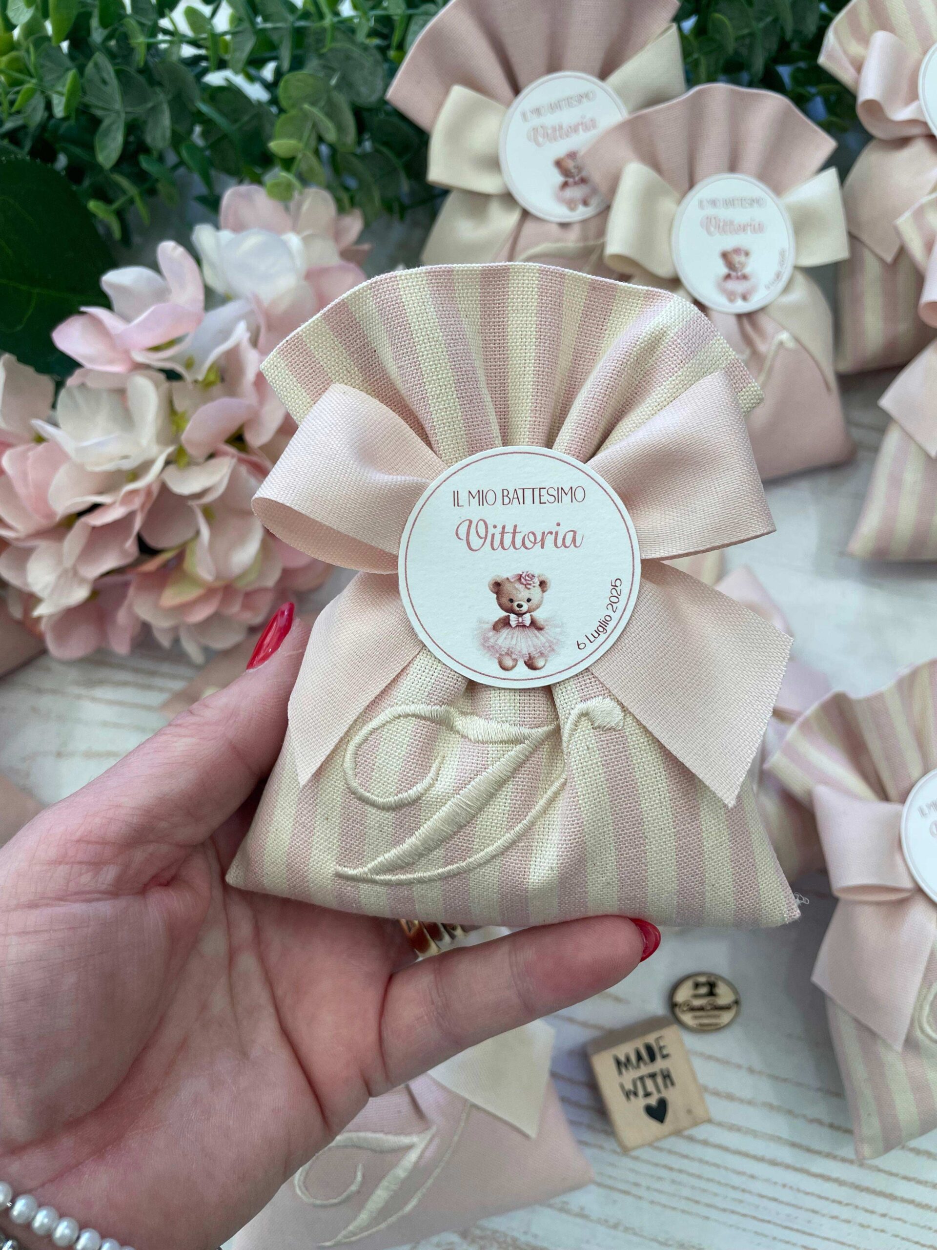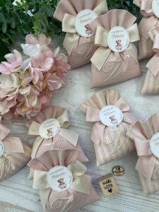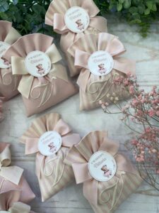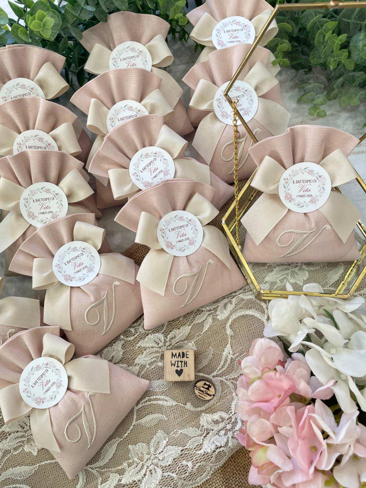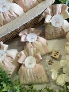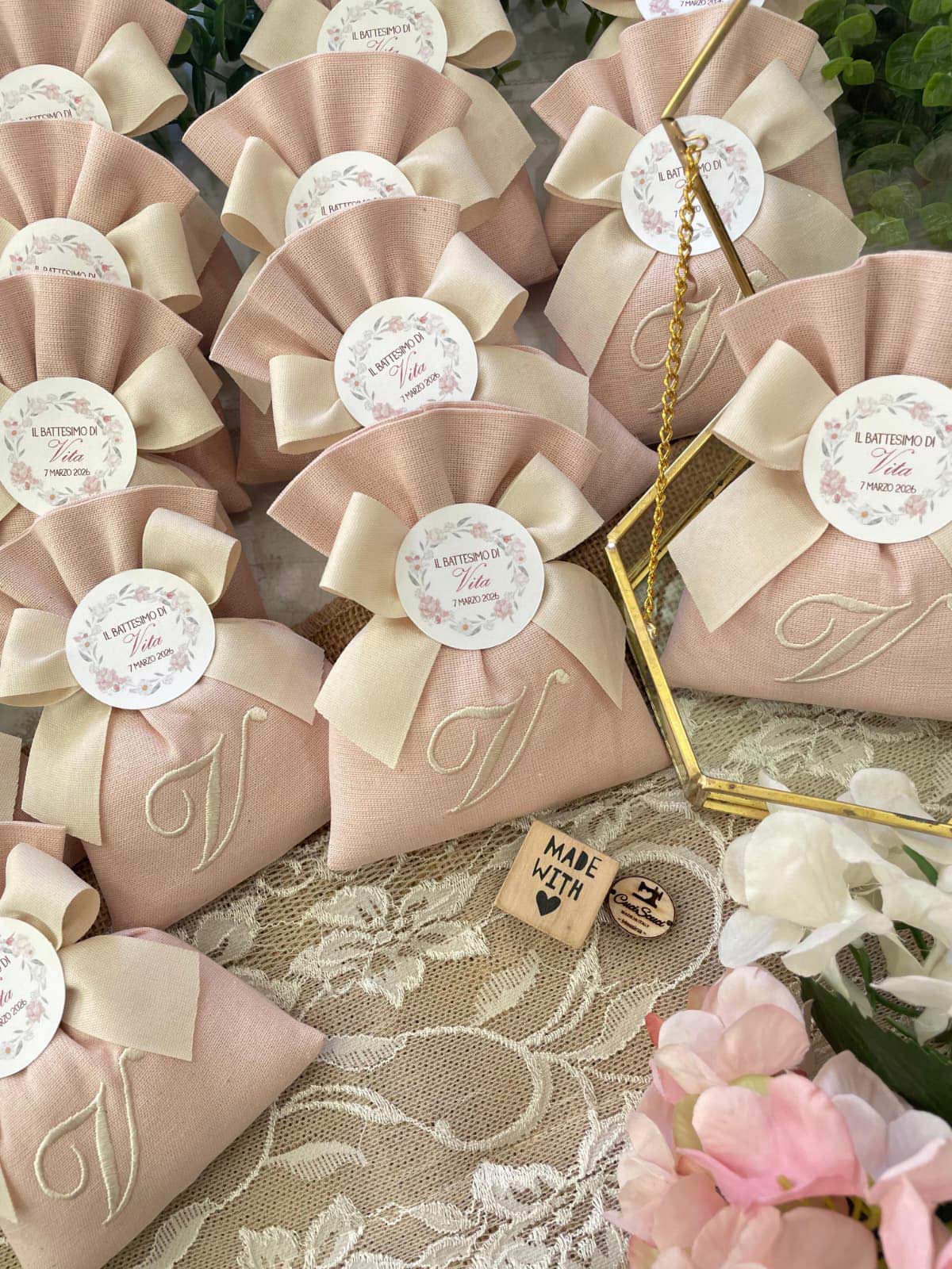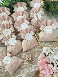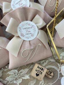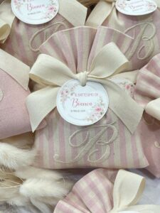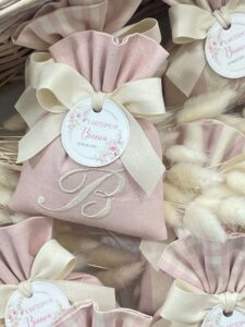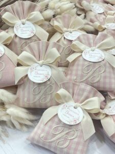 Ogni sacchetto può essere ricamato con l’iniziale desiderata, rendendo ogni bomboniera unica e irripetibile.